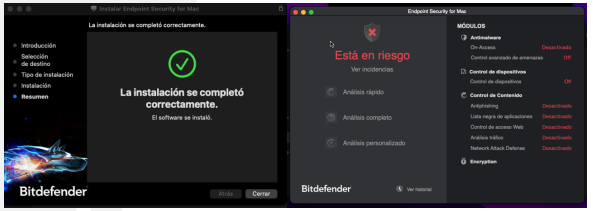 Al finalizar se mostrará una ventana que indica que el antivirus se instaló correctamente,