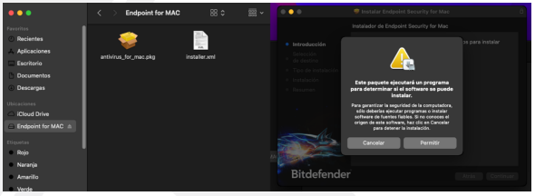 archivo antivirus_for_mac.pkg, donde se ejecutará y debemos permitir la ejecución del