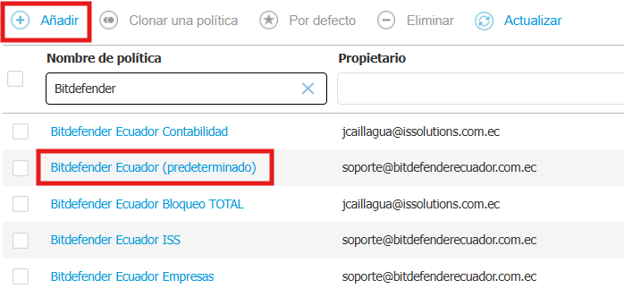 Si queremos crear una política con ajustes prestablecidos de otra política, debemos marcar la política que queramos que nos sirva de base y se habilitará la opción de -Clonar una política-.