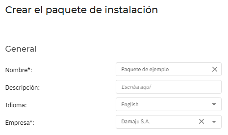 Aquí tenemos la posibilidad de crear paquetes, en caso de que no tengamos ninguno disponible para descargar. Al momento de crear tenemos las siguientes opciones: