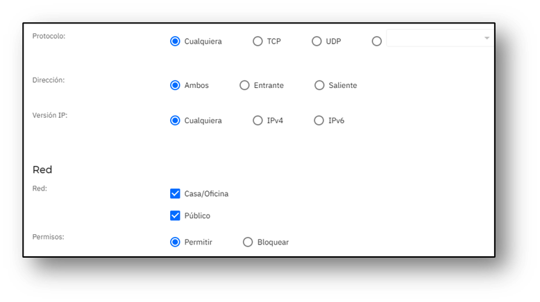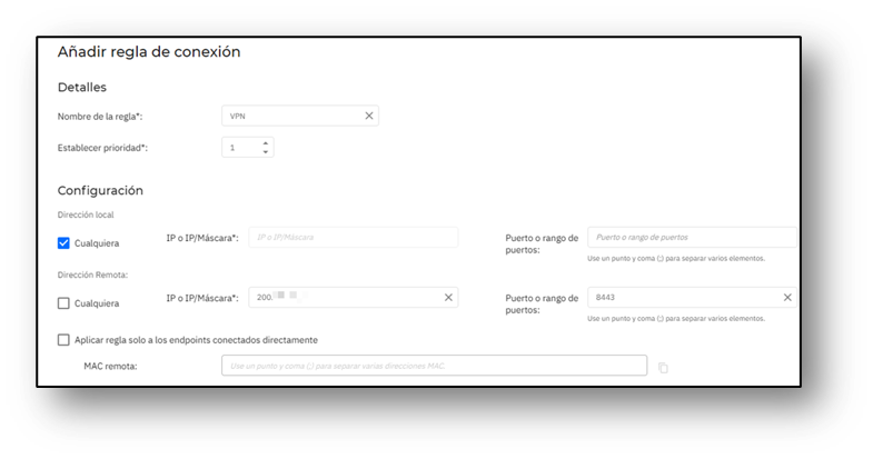 configuración de reglas personalizadas, es posible habilitar conexiones