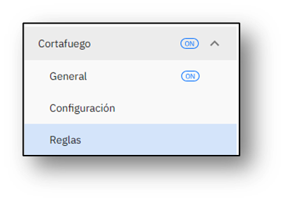 1. Dentro de la política en cortafuego, dirigirse a la pestaña Reglas.